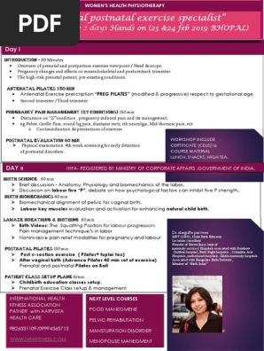 Antenatal postnatal exercise specialist": Certificate Course 2 days Hands on (23 &24 feb 2019 Bhopal) | Postpartum Period | Childbirth