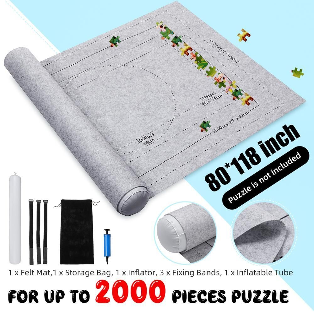 Puzzle Roll Up Mat Premium Pump Store And Transport Jigsaw Puzzles Up To 1500 Pieces 46 X 26 Felt Mat Inflatable T Puzzle Roll Up Mat Puzzle Box Puzzles