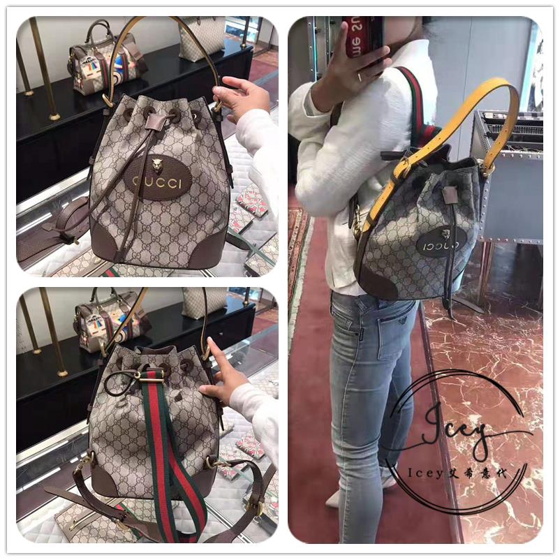 Gucci Tiger Head Supreme Double G Canvas Drawstring Bucket Bag Backpack Portable Women S Bag 473875 Shopee Malaysia